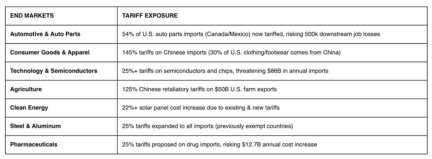 End Market Exposure to Tariffs (as of 4/23/2025)1
